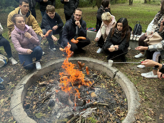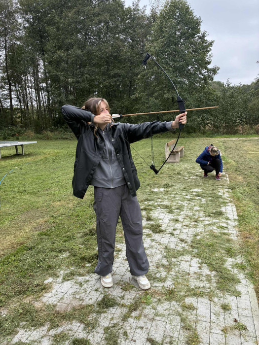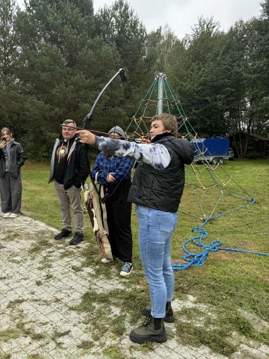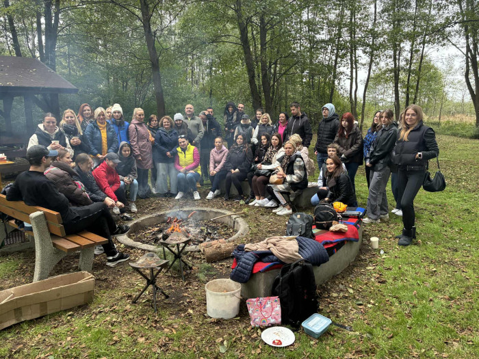 Po dotarciu do miejsca docelowego odbyło się ognisko z pieczeniem kiełbasek i ziemniaków. W programie znalazły się również konkurencje sportowe, takie jak przeciąganie liny, koszykówka oraz II Konkurs Łuczniczy, które dostarczyły dodatkowych emocji i ducha rywalizacji. Tym razem tytuł „ Sokolego Oka” zdobyła Anastasia Chelak z klasy I technik usług kosmetycznych! II miejsce „na podium” zajęły również panie, Maria Kręcisz i Tatiana Janicka. Pozycje medalowe zamknął Marcin Pakuła z klasy I technik masażysta.