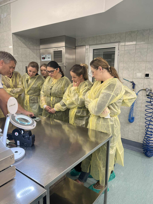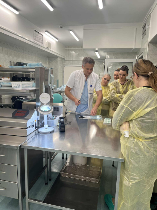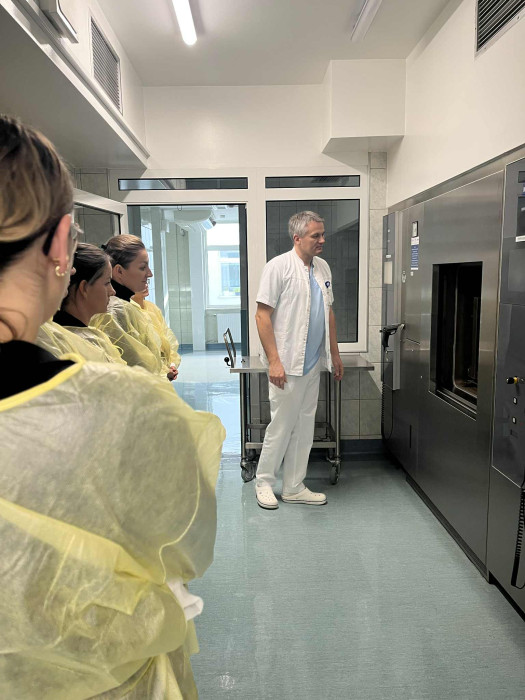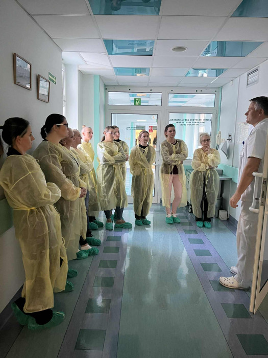 Celem wycieczki było zapoznanie się z organizacją pracy oraz procesami zachodzącymi w Centralnej Sterylizatorni, a także z zasadami zapewniania bezpieczeństwa i jakości w zakresie dekontaminacji, dezynfekcji i sterylizacji narzędzi medycznych. Podczas wizyty słuchaczki zostały oprowadzone po poszczególnych strefach sterylizatorni: strefie brudnej, czystej i sterylnej. Omówiono szczegółowo etapy procesu dekontaminacji, mycia i dezynfekcji narzędzi, a także przygotowania, pakietowania i sterylizacji przy użyciu autoklawów parowych.