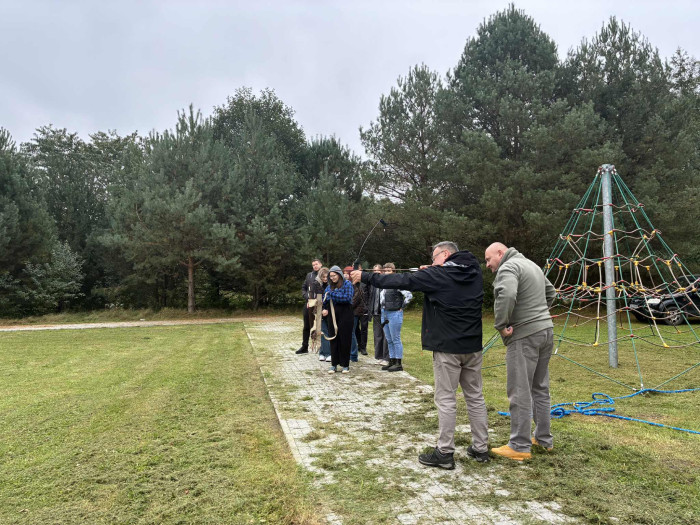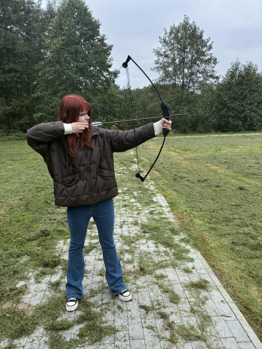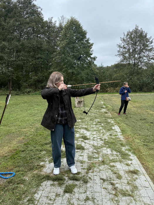 Po dotarciu do miejsca docelowego odbyło się ognisko z pieczeniem kiełbasek i ziemniaków. W programie znalazły się również konkurencje sportowe, takie jak przeciąganie liny, koszykówka oraz II Konkurs Łuczniczy, które dostarczyły dodatkowych emocji i ducha rywalizacji. Tym razem tytuł „ Sokolego Oka” zdobyła Anastasia Chelak z klasy I technik usług kosmetycznych! II miejsce „na podium” zajęły również panie, Maria Kręcisz i Tatiana Janicka. Pozycje medalowe zamknął Marcin Pakuła z klasy I technik masażysta.